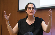 Journalist Sarah Koenig tells students how the podcast Serial became an addiction for so many listeners.