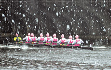 The men's rowing team added pink to the school colors at the snowy Head of the Charles regatta, where it raised money to "Pull for a Cure."