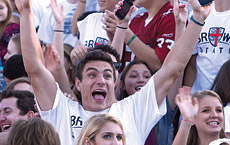 At the Swearer Center’s 25th anniversary festivities September 24, students greeted President Paxson.