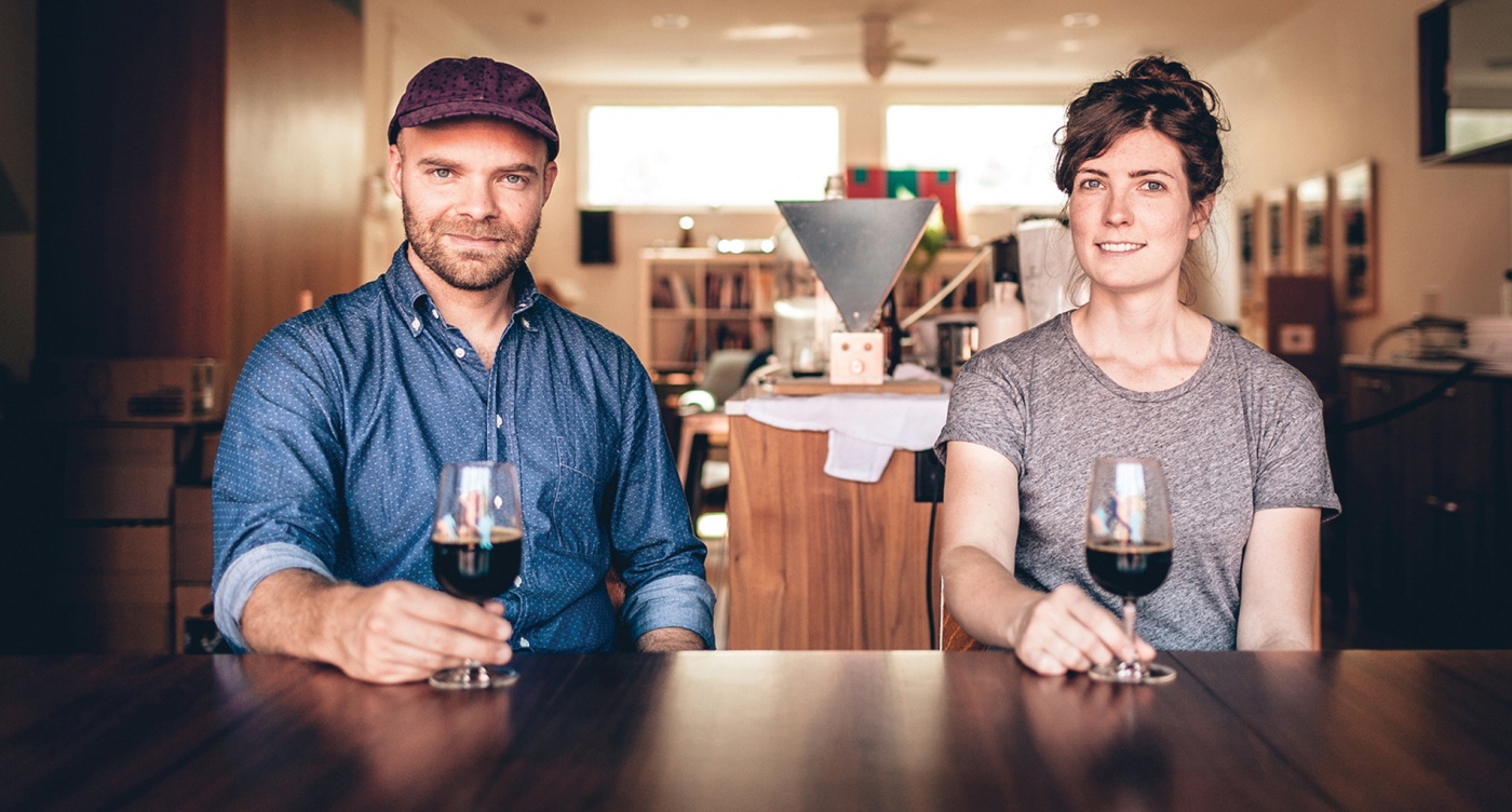 This past summer, former “gypsy brewers” Joe Grimm ’06 AM and Lauren (Carter) Grimm ’05 opened a 7,500-square-foot brewery and taproom in the East Williamsburg neighborhood of Brooklyn, a permanent home for Grimm Artisanal Ales. The Grimms have been selling beer since 2013, when the company was founded (developing recipes in their Brooklyn apartment, but using commercial breweries to craft the beer). The two had been experimenting with home brews since 2005, when they met at Brown. A trip to Belgium created a fascination with Belgian ales, and their first commercial brew was a Belgian-style blonde ale flavored with rose hips. Others: the award-winning Double Negative imperial stout; Lambo Door, a double IPA; and Lilt, a blended sour with cherries.