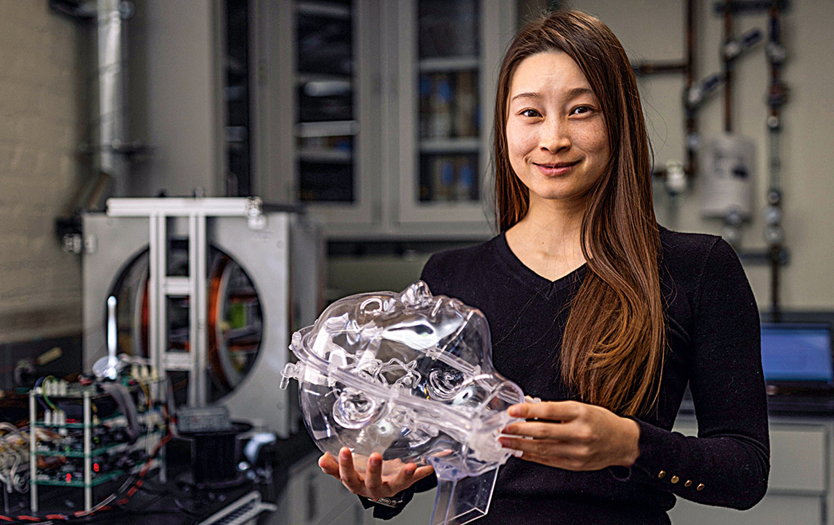 But there’s new hope ahead. Earlier this year, Renee Zhao ’14 ScM, ’16 PhD and her team of researchers at Stanford’s Soft Intelligent Materials laboratory published a paper in Nature unveiling a groundbreaking new approach to treating ischemic strokes that could one day save millions of lives. Her device, called the millispinner, is a robot not much larger than a poppy seed, but in early tests it proved capable of removing blood clots with unprecedented speed and accuracy.
