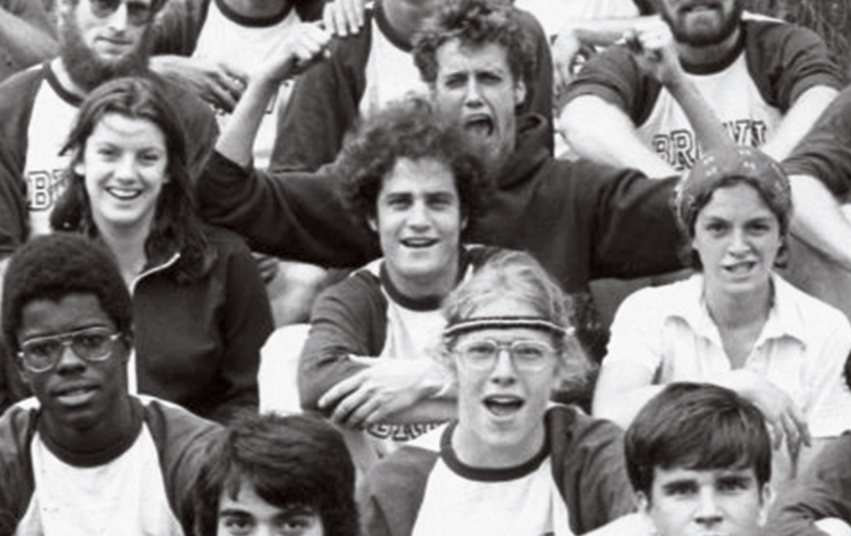 The Ultimate (Frisbee) Hall of Fame inducted Ron Kaufman ’78 into its ranks last October at a 50th anniversary celebration in San Diego. He was one of the “Johnny Appleseed” group of players who first brought Ultimate to college campuses. Kaufman’s high school, in Westport, Connecticut, fielded the world’s second Ultimate team; the sport was brought there by a math teacher who had attended high school in Maplewood, New Jersey, where it all began. In 1974, Kaufman was the founding captain of the Brown University Ultimate Frisbee Team (pictured, third row in the center); it was mostly made up of fellow students from Olney House, Kaufman says. Brown’s team (now called “Brownian Motion”) has won numerous tournaments and awards over the years. In 2015 there was a 40th reunion of Brown Ultimate Teams, which drew players from 1974-2015 as well as Dean Barrett Hazeltine, who Kaufman says had thrown the “first Frisbee” in 1974. After Brown, Kaufman promoted the sport globally through his organization Disc Covering the World. Now played worldwide, Ultimate was recently recognized by the Olympic Committee.