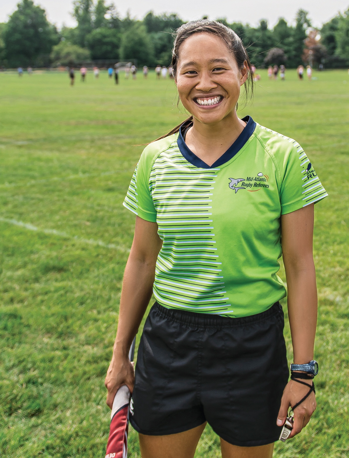 After returning to the U.S., Hsieh refereed as many games as she could on weekends while holding down a full-time job as a data analyst. After two years, she quit that job to focus on rugby, getting support from her family and holding a variety of part-time positions. “I thought it was important to have the flexibility to travel in order to develop as a referee,” she says, “so I could stay on the path that I had set for myself, to make it to the Summer Olympics in 2020.”